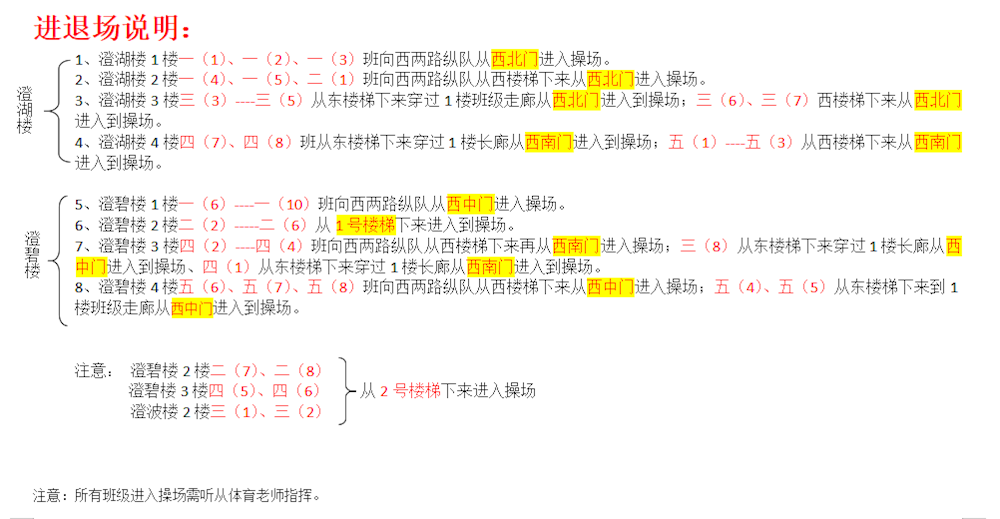 2022年9月碧波实验小学澄湖路校区大课间出操路线(试行) 来源: 发布时间:2022-09-08 14:15:24 浏览次数: 次 【字体:小 大】 2022年9月碧波实验小学澄湖路校区大课间出操路线(试行) 分享到: 【打印正文】