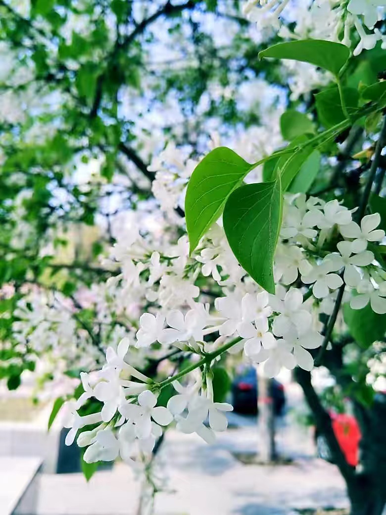 今年的丁香花似乎开得格外茂盛,城里城外,都是一样。城里街旁,尘土纷嚣之间,忽然呈出两片雪白,顿使人眼前一亮,再仔细看,才知是两行丁香花。有的宅院里探出半树银枝妆,星星般的小花缀满枝头,从墙上窥着行人,惹得人走过了,还要回头望。
